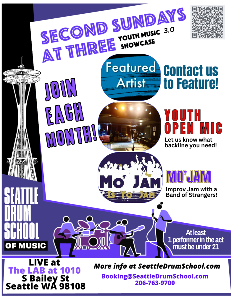Spread the word…Second Sundays at Six: A south Seattle opportunity for musicians under 21 to perform and jam, with professional sound engineers making you sound great AND creating content for you.