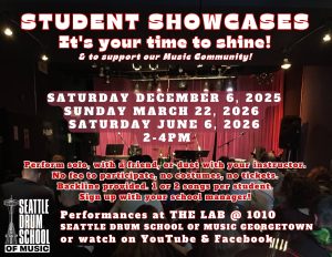 The Seattle Drum School of Music is a fiscally sponsored project of the Allied Arts Foundation. Allied Arts Foundation is a registered 501(c)(3) nonprofit (EIN: 91-0829974).